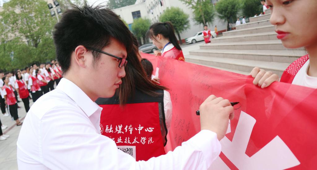 学生党员在横幅上满怀深情写下要对党说的心里话1