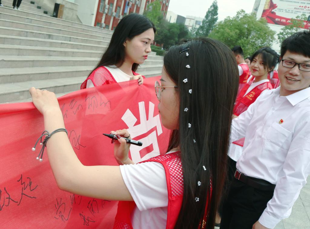 学生党员在横幅上满怀深情写下要对党说的心里话2