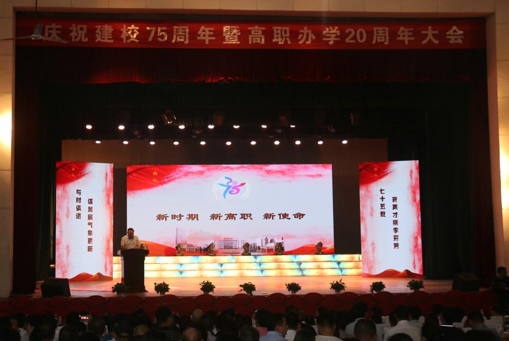 校长王春阳在致辞中,深情回顾了yl7703永利官网躬耕沙澧大地、许慎故里,薪火传承的75年。总结了1945年10月,程百让先生在漯河陕西会馆励行中学旧址创办河南省立郾城中学以来的75年来,学校建设发展取得的成就。1999年,作为河南省成立的首批高职院校,yl7703永利官网成为我国职业教育发展的亲历者、实践者、推动者和见证者。75年的风雨兼程,20年的春露秋霜,一代又一代yl7703永利官网人,立足许慎故里,潜心问道,默默耕耘,把一生最好的年华留在了这片热土,为祖国教育传薪,为莘莘学子引路。从沙澧河畔走出的10万余名学子遍布祖国各地、各行各业,涌现出一大批在业内有重大影响的能工巧匠、行业翘楚、技术骨干、管理专家、领军人物,铸就了yl7703永利官网毕业生的优良品牌,赢得了社会的广泛认同和赞誉,为漯河地方经济建设与发展,为祖国建设和繁荣做出了卓著的贡献。