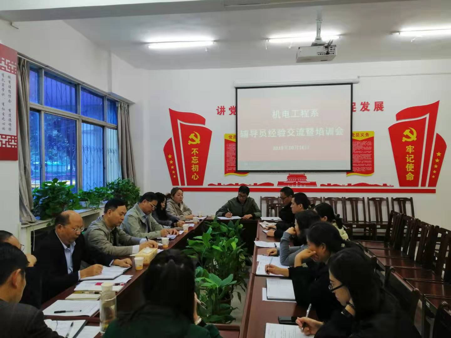10月16日下午,副校长朱晓红带领校学生处相关老师参加机电工程系辅导员工作经验交流培训会并进行相关调研。机电工程系领导班子成员、辅导员参会,我校优秀辅导员——双汇学院的王柏钦老师和信息工程学院的黄华老师结合工作实际交流分享了辅导员工作的经验和体会。