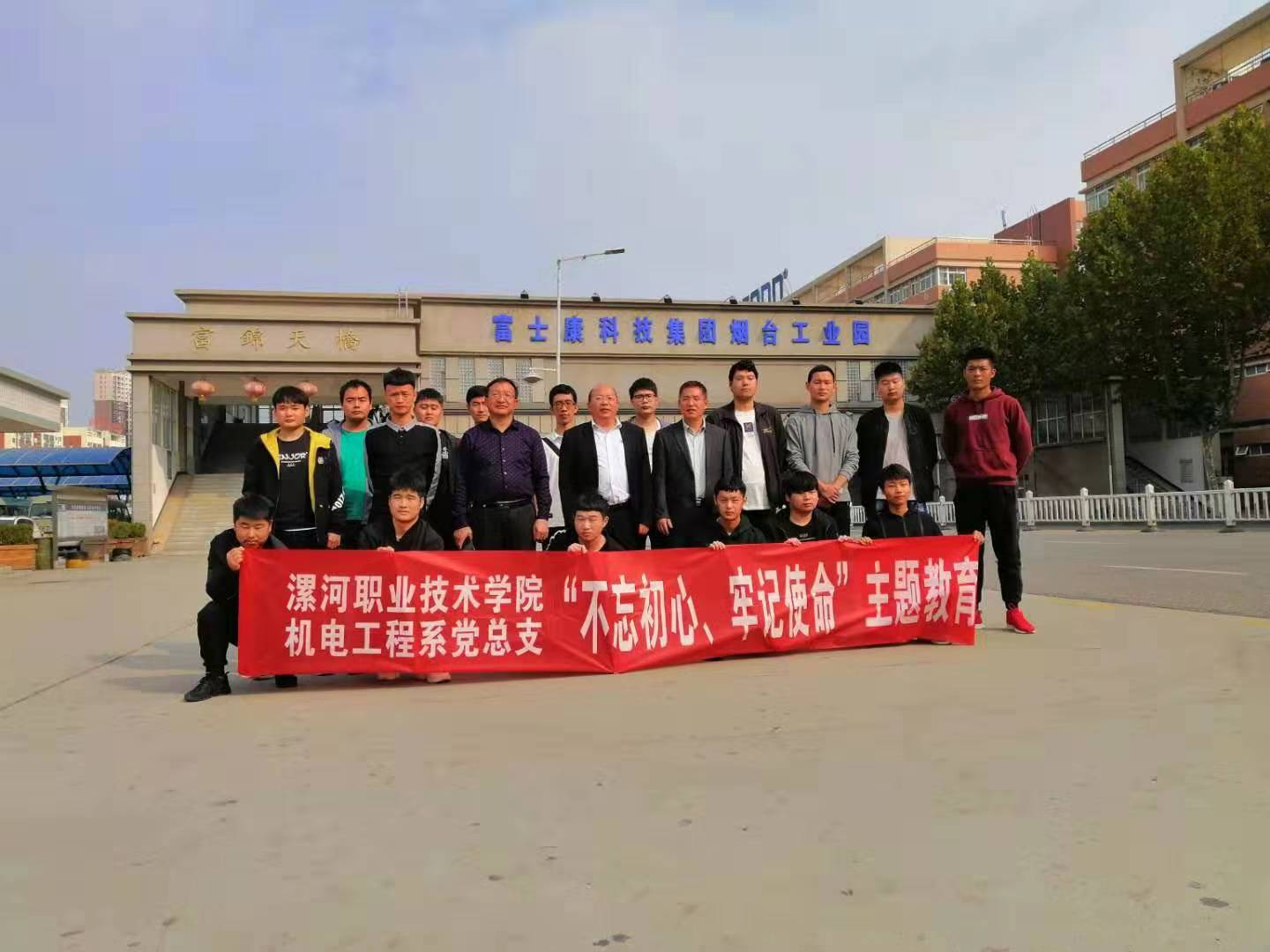 10月20日,yl7703永利官网机电工程系党总支书记翟迎朝专程赴烟台富士康工业园区,看望慰问在这里进行实习的2017级学生,为实习的学生党员、入党积极分子和学生代表共110多人讲了一堂生动的党课。
