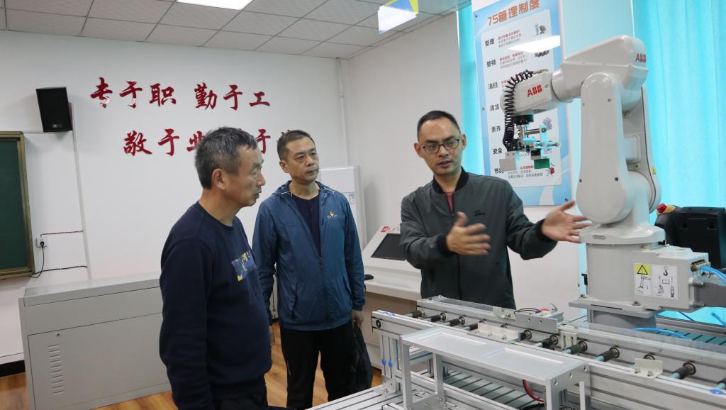 到电气电子工程系工业机器人实训室、无人机装配实训室调研,听取了学校工业机器人专业、无人机专业的发展情况,沟通主题教育的意见建议,对当前校企深度融合做了进一步的交流。