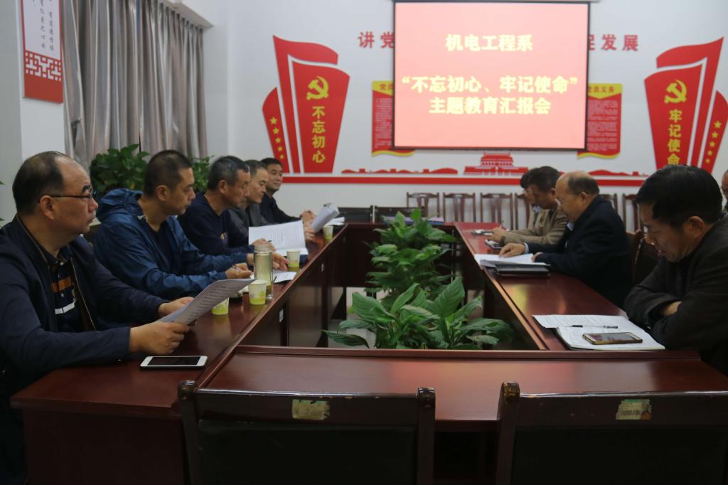 到机电工程系党员活动中心调研,听取了机电工程系“不忘初心、牢记使命”主题教育开展情况的工作汇报,对学校“不忘初心、牢记使命”主题教育党课走进校外实习学生给予充分肯定。