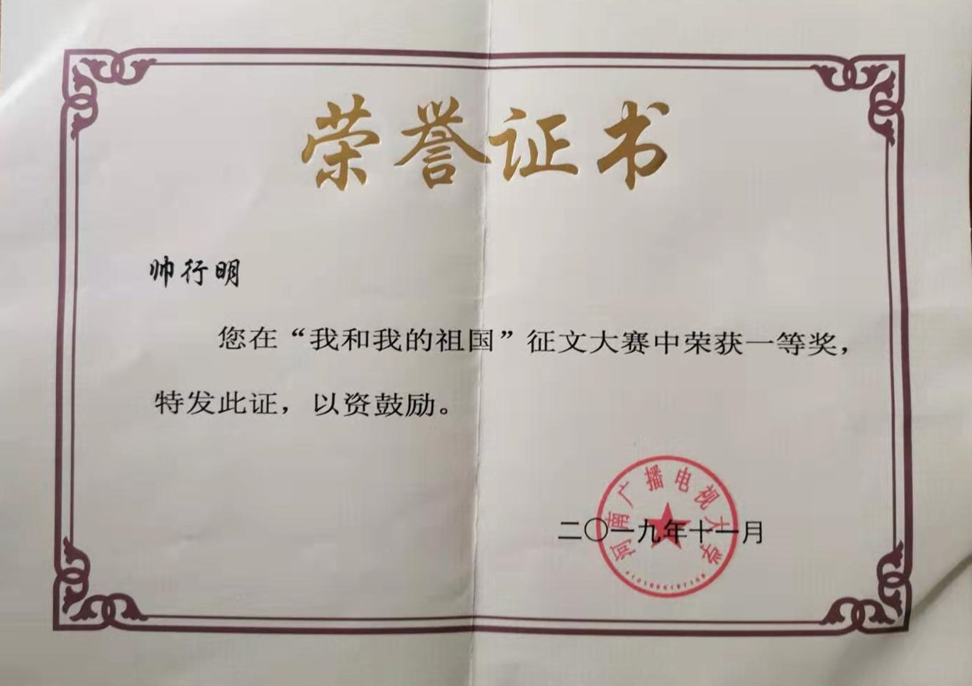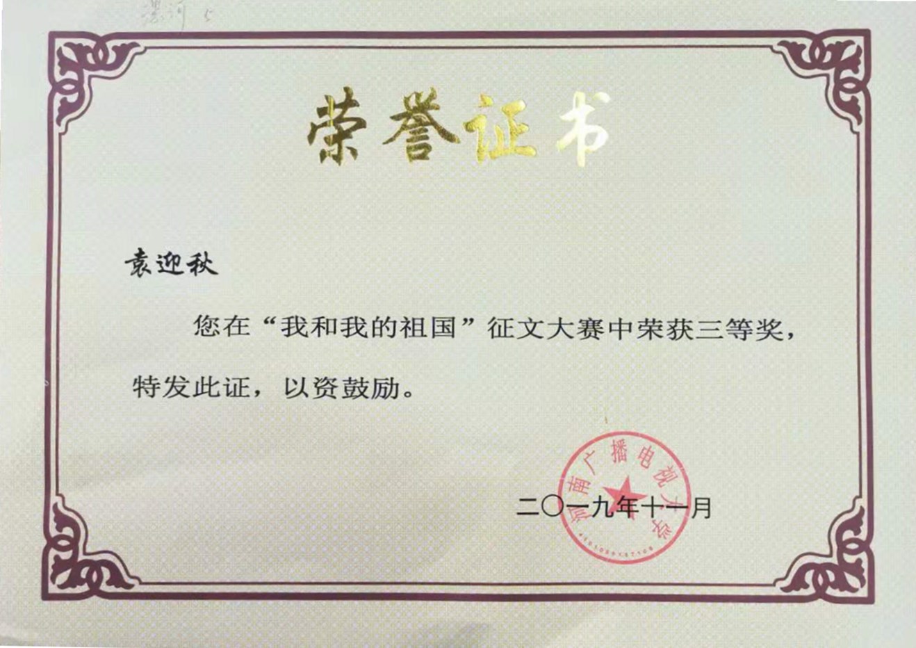 经评审专家认真评审,我校五位师生的作品从三百多篇征文中脱颖而出,分获一、二、三等奖。其中帅行明老师的《九架岭的变迁》获一等奖,杨子峰老师的《我和我的祖国》、孙国明老师的《昨天•今天•明天》、徐莉老师的《祖国,我爱您》获二等奖,袁迎秋同学的《我和我的祖国》获三等奖。
