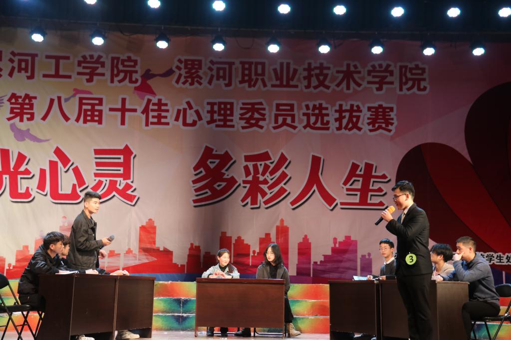 为进一步加强我校心理委员队伍建设,充分发挥心理委员在心理健康教育方面的积极作用,11月13日,由校学工部主办的第八届十佳心理委员决赛在校大礼堂成功举行。副校长朱晓红、学工部部长程传蕊及各院系党总支书记与近千名学生代表一起观看了比赛,各院系副书记担任本次比赛评委。