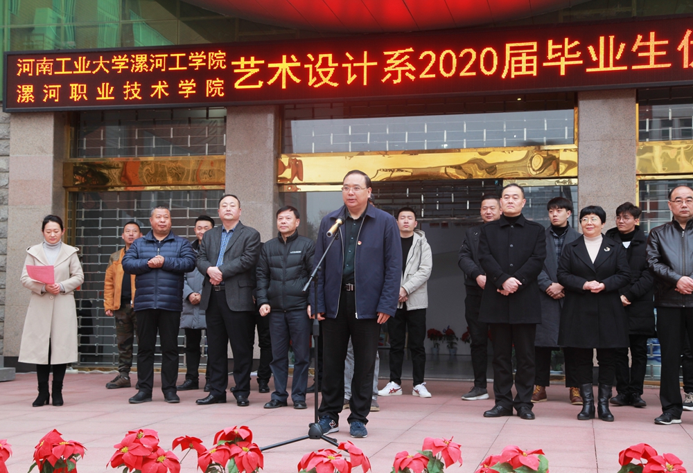 11月26日,艺术设计系举行设计·未来——2020届毕业生优秀作品展开幕式。校党委书记顾文明、纪委书记薛存心、副校长王变奇、工会主席吕爱华,中国美术学院教授、硕士生导师、我校客座教授连放及部分处室长、艺术设计系1000多名师生参加了开幕式。漯河亘古文化传播有限公司董事长吕会卿、北京京展佳会国际会议展览有限公司副总经理王华德及二十余家公司代表、新闻媒体也受邀参加了开幕式。