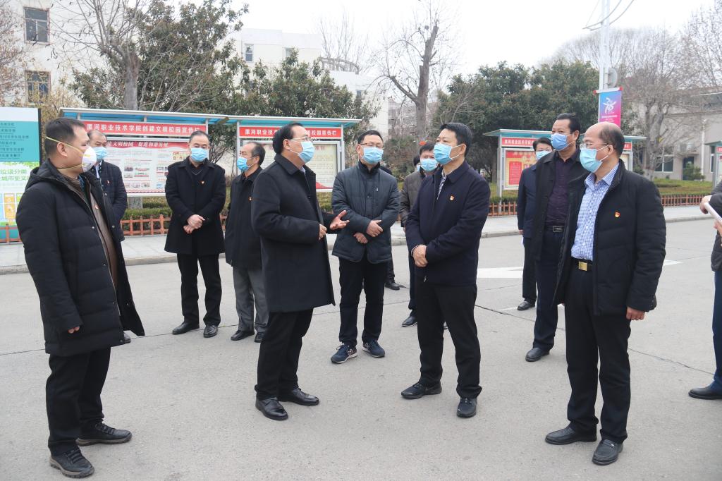 2月14日,漯河市教育系统新冠肺炎疫情防控工作专班组长、市委副书记贾宏宇在专班副组长、市委副秘书长陈瑞峰,专班副组长、市委教育工委书记、市教育局党组书记、局长赵建钊,市委教育工委委员、市教育局党组成员、副局长周英民等陪同下来我校调研新冠肺炎疫情防控工作。校党委书记顾文明就学校新冠肺炎疫情防控工作相关情况进行汇报。校长王春阳,纪委书记薛存心,副校长朱晓红、王变奇、代骅,工会主席吕爱华等参加调研。