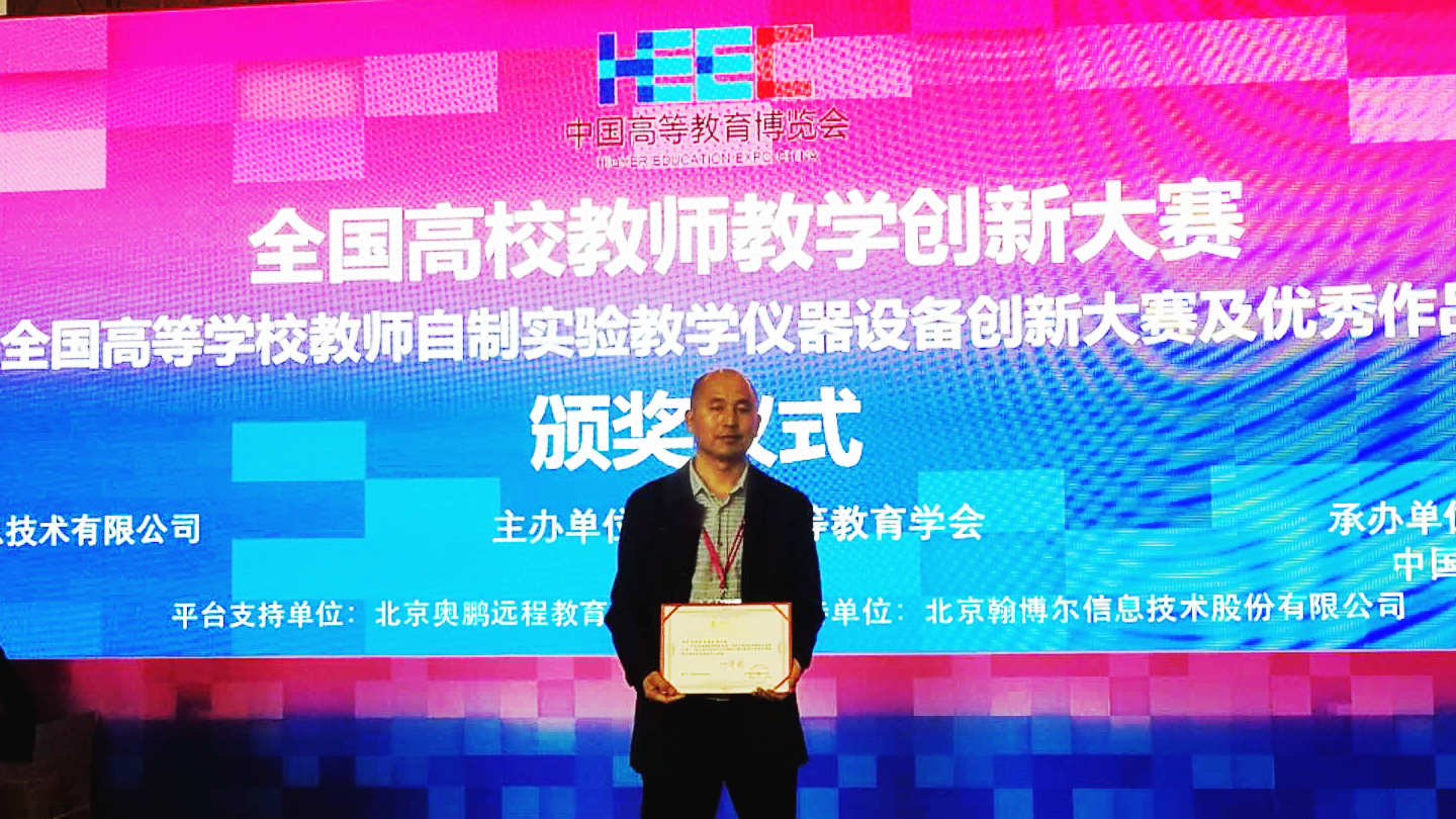 孔祥林老师是漯河市工匠,有近30年的汽车维修经验,理论雄厚、技术精湛,是方圆百里的修车名家,先后在各种大赛中获得过多次大奖。2018年,在全国高校教师教学创新大赛——第五届全国高等学校教师自制实验教学仪器设备创新大赛决赛中,孔祥林老师的参赛作品以绝对优势获得了一等奖,是获得一等奖的12所高校中唯一的专科院校教师。同获一等奖的还有清华、北大、哈工大、西工大等11所名牌重点高校。“这让我们很吃惊,真不敢相信这个作品竟然出自一位高职教师的手中。”在比赛现场,一位来自985、211双一流高校的参赛教师感慨的说。