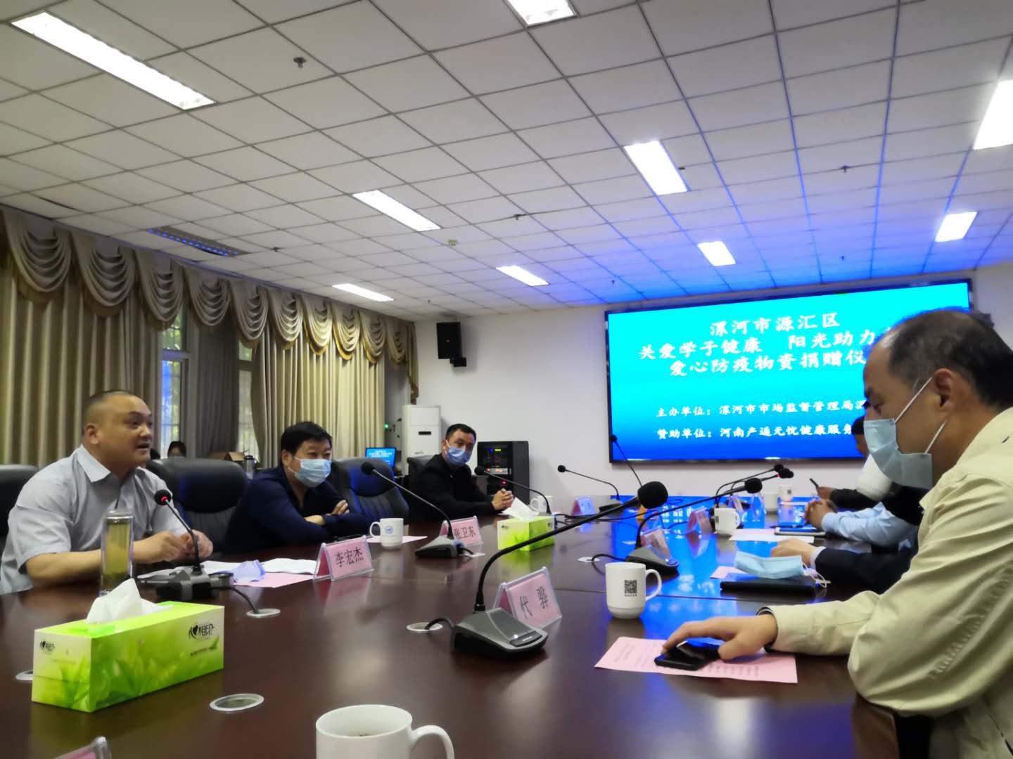 5月9日,“关爱学子健康,阳光助力复学”爱心防疫物资捐赠仪式在漯河医学高等专科学校隆重举行,漯河市市场监督管理局源汇区分局领导李宏杰带领爱心企业河南产逅无忧健康服务有限公司向各级学校捐赠一批防疫物资。本次捐赠用实际行动诠释了企业的社会责任和无私大爱,有效缓解了我市教育系统筹备疫情防控物资的压力。