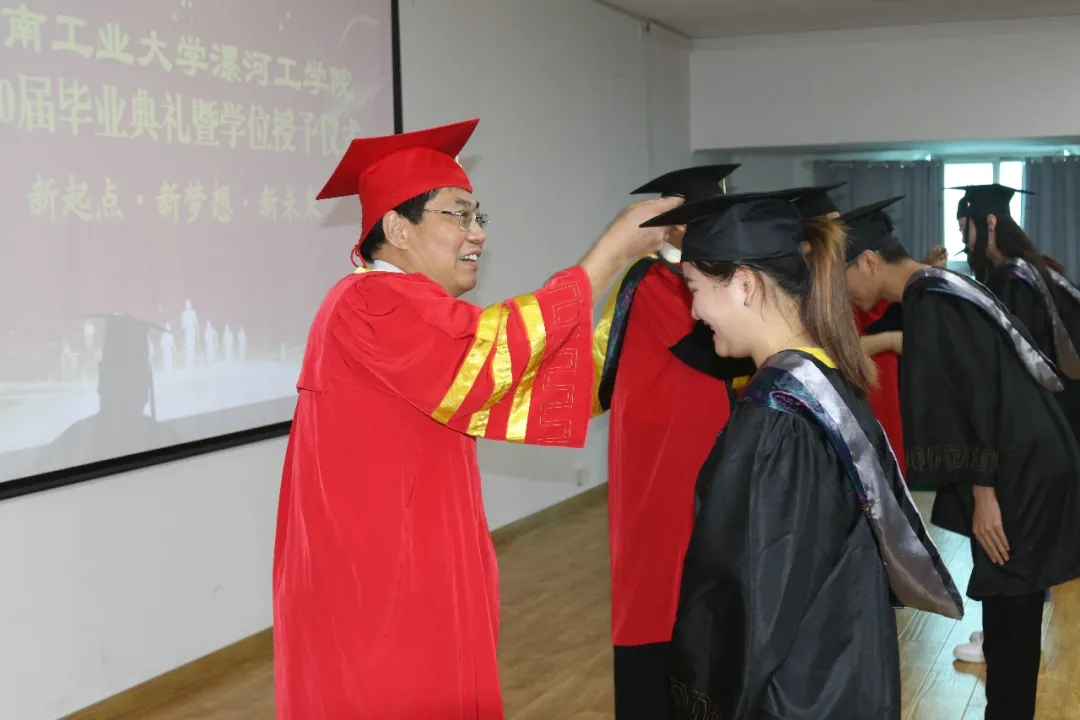 河南工业大学漯河工学院校长王春阳教授为毕业生拨穗