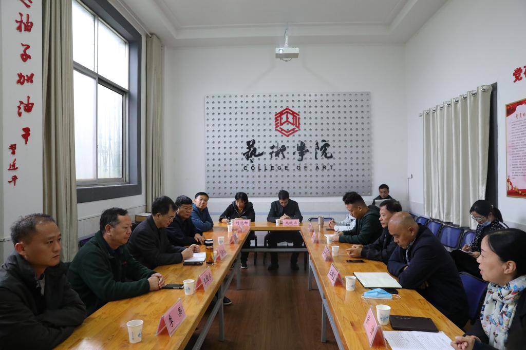10月15日,在学校美术馆就我校承担的2020年市社科联集中攻关重大课题《中原生态水城建设中漯河沙澧河两岸建设研究》举办了“校政联合”学术交流会,漯河市社科联主席宛照元,联合攻关单位市沙澧河建设管理委员会副主任张韶敏、规划部部长王经彦、工程部部长赵君亮等受邀参加交流会,副校长王变奇及相关部门负责同志参加交流,课题主持人学校艺术学院周啸男老师负责汇报,会议由科研处副处长张津主持。