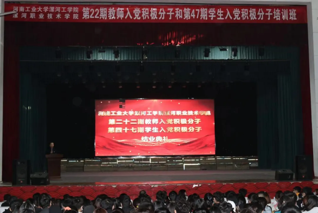 11月8日,我校在学校大礼堂隆重举行第22期教师入党积极分子和第47期学生入党积极分子培训班结业典礼,党委副书记薛存心,党委委员易春林,相关部门负责同志及各党(总)支部党务工作者和第22期教师入党积极分子、第47期学生入党积极分子参加,结业典礼由党委组宣部副部长王平岗主持。