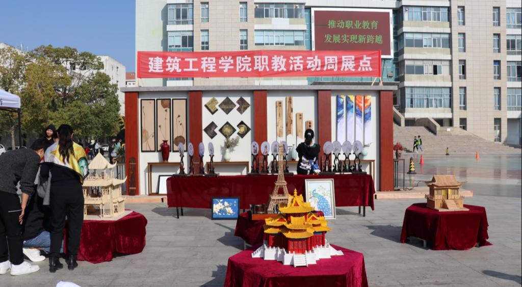 职教活动周期间,学校各院系(部)都举办了丰富多彩的活动。例如,电气电子工程系开展了无人机机型展示介绍、机器人机型展示介绍、“手把手教你飞”无人机技术交流活动等;服装系展示了家用纺织品、时尚丝巾、童装纹样和手工扎染等多个品类的设计作品和简爱项目化教学作品;工商管理系结合当下最火的营销方式——直播带货,由本次职教活动周的参与的企业之一——爱团团进行现场展示;建筑工程学院展示了建筑模型、石膏壁画、木艺小品、抽象写意墙面小景、墙面肌理艺术制作、团扇艺术、插画艺术等100件作品;双汇学院以"为您的财富保驾护航,提醒您防范金融诈骗"为主题举行了一系列活动;许慎文化学院展示了包括衍物、简笔画、粘土画、刻纸等6大类别作品;食品学院为广大师生现场演示常见食品相关指标的快速检测方法,并为他们提供合理的膳食建议;旅游与航空学院围绕“谦雅”学子育人工程,举办了朗诵沙龙活动,为文化旅游系统工作人员举办《文旅融合的理论内涵与漯河实践》专题讲座,现场提供漯河旅游资源及旅游信息咨询服务;艺术设计系举办疫线•艺现——2020艺术设计系教师作品展,表达对战“疫”英雄的无限敬意;机电工程系开展“智能制造2025”暨机电工程系创新作品展示活动;信息工程学院通过物联网实景展示实训室,进行了智慧家居、智慧交通和安全预警的项目展示;音乐舞蹈系举办演唱会;基础部宣传推广国家级非物质文化遗产项目--心意六合拳。