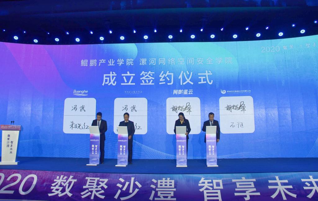 11月30日,2020“数聚沙澧 智享未来”食品行业工业互联网标识解析二级节点上线暨漯河市大数据产业签约仪式在漯河隆重举行。漯河市委书记蒿慧杰宣布中国漯河食品云、食品行业标识解析综合型二级节点和 “星火·链网”骨干节点正式上线。河南投资集团党委书记、董事长、总经理刘新勇,漯河市委副书记、市长刘尚进分别致辞。在漯河市大数据产业签约仪式现场,学校副校长朱晓红和黄河科技集团创新有限公司董事长冯武共同签署了《yl7703永利官网与黄河科技集团创新有限公司共建“鲲鹏产业学院”合作协议》。