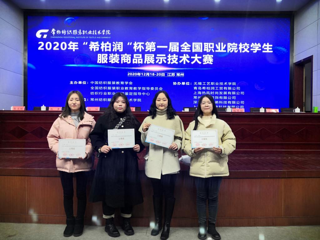 近日,全国首届服装商品展示技能竞赛在常州纺织服装职业技术学院隆重举行,经过激烈角逐,我校选派的服装系参赛学生不负众望,获得三等奖2项。
