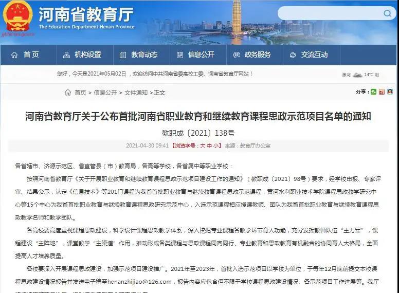 河南省职业教育和继续教育课程思政示范项目名单公布