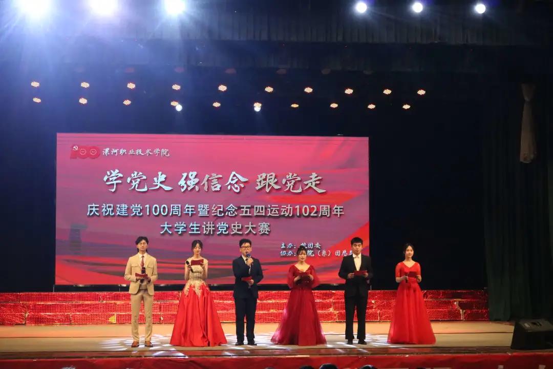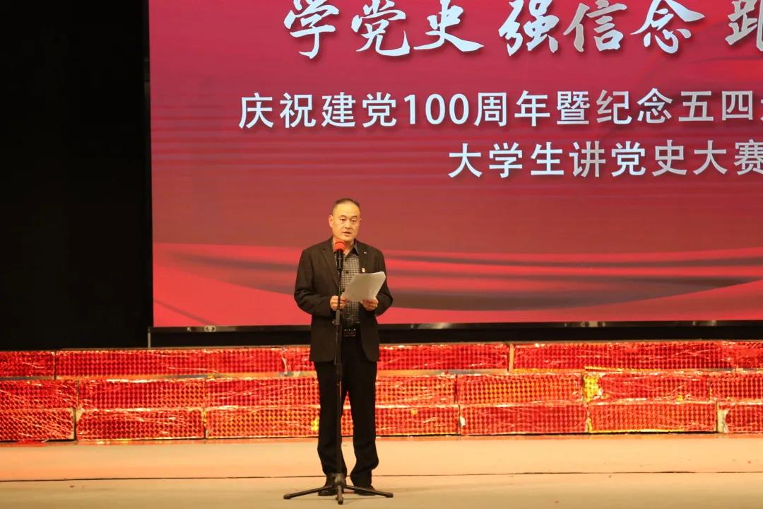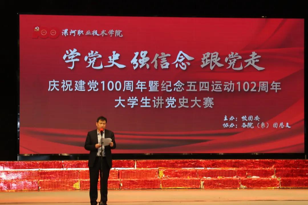 4月29日下午,yl7703永利官网举行“学党史 强信念 跟党走”庆祝建党100周年暨纪念五四运动102周年大学生讲党史大赛。漯河市委宣传部副部长甘信奎,共青团漯河市委副书记陈增,校党委副书记薛存心,党委委员、组织宣传部部长缪俊岭等领导与师生代表千余人共同观看了比赛。
