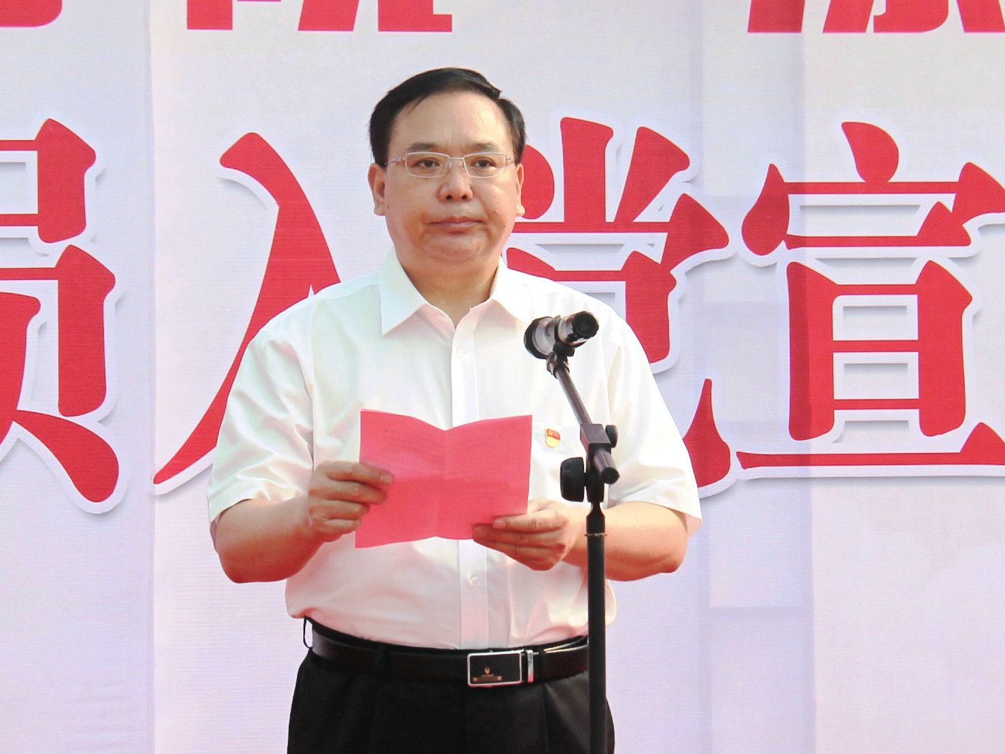 为庆祝中国共产党成立100周年,大力营造爱党信党跟党走的浓厚氛围,6月11日,yl7703永利官网隆重举行新党员入党宣誓和党员重温入党誓词活动,党委书记顾文明出席并讲话,党委副书记、校长王春阳主持仪式。学校党委领导班子成员出席,全校党员教职工400余人参加活动。