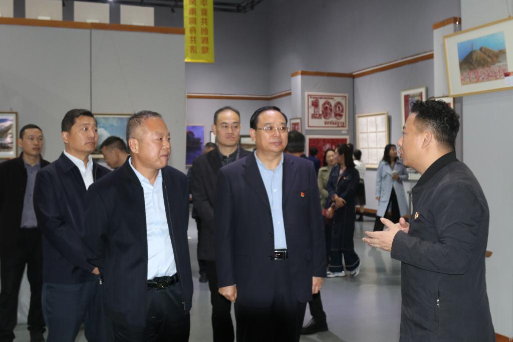 指导组参观了学校党史学习教育师生艺术作品展,认真观看了每一幅作品,对学校发挥学科专业优势,创新党史学习教育形式,组织广大师生通过书法、剪纸、油画、手工、海报等向中国共产党建党百年献礼给予高度肯定。随后,集体观看了《yl7703永利官网高质量推进党史学习教育》微视频。