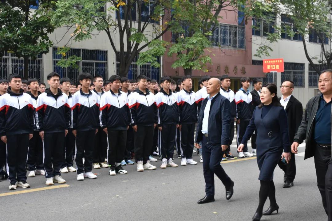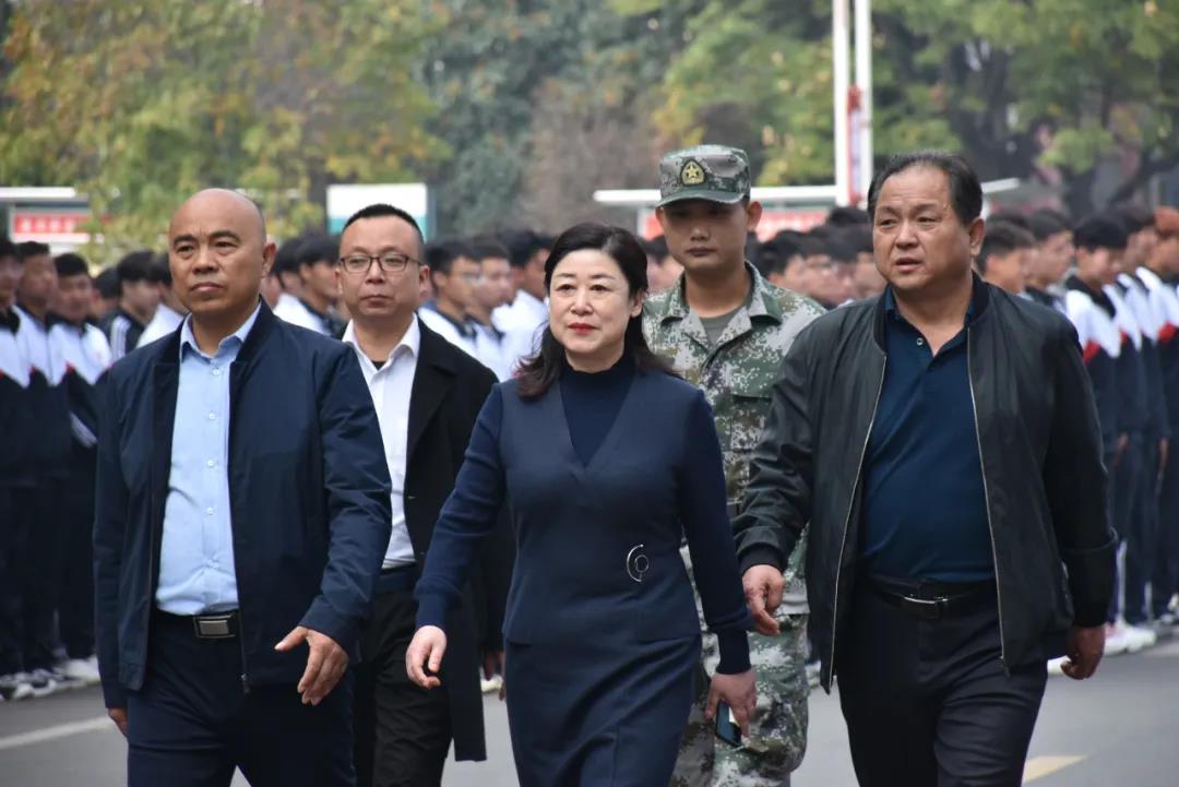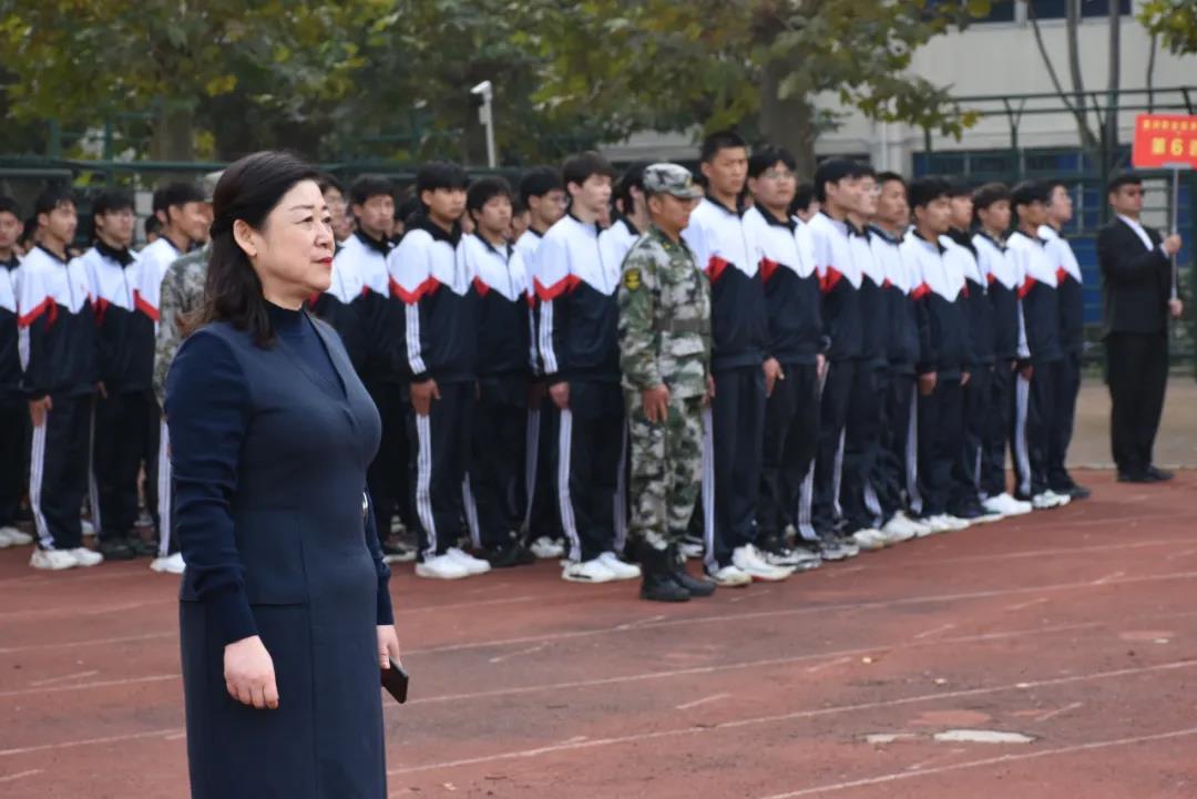为配合做好新冠肺炎疫情防控工作,此次检阅采取小型分散式开展。程传蕊一行从西操场开始进行检阅,穿过校园主干道,一直到东操场,各方队进行分列式表演,受训新生军姿挺拔,接受校领导检阅。