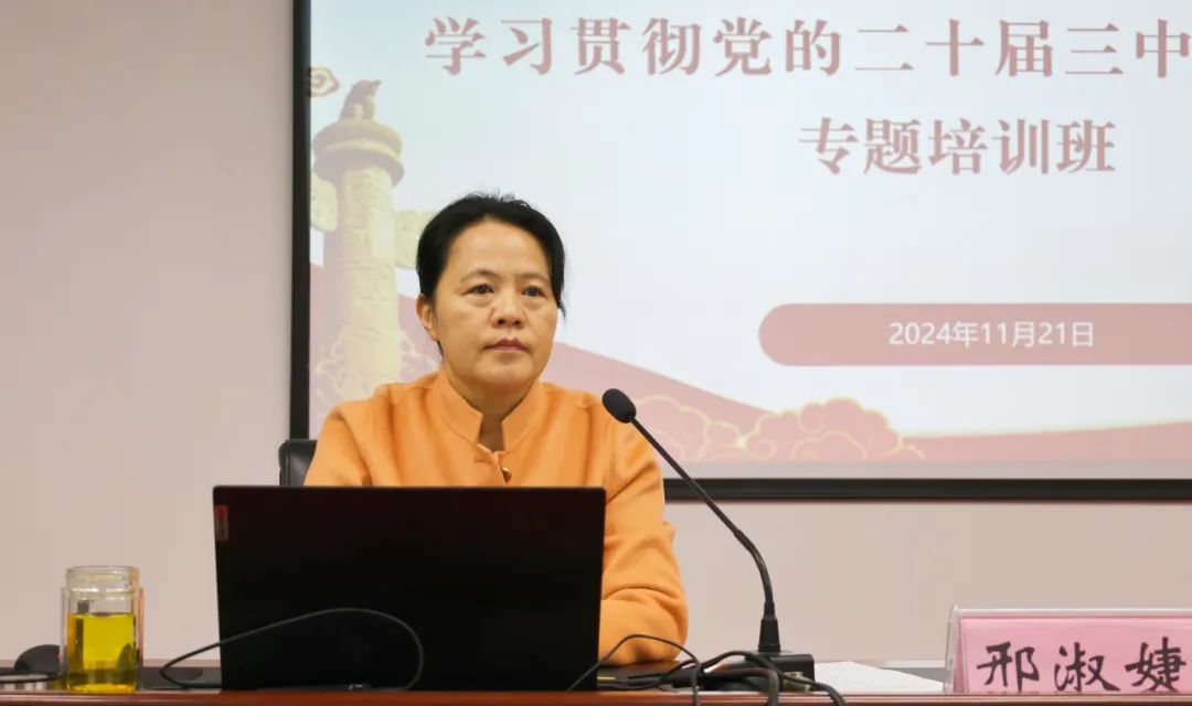 培训期间,邀请了桂林电子科技大学教授蒋满霖、漯河市检察院专职委员彭国全、漯河市互联网应急指挥中心副主任韩中玉、马克思主义学院教师郭晓果对党的二十届三中全会精神开展重点解读。