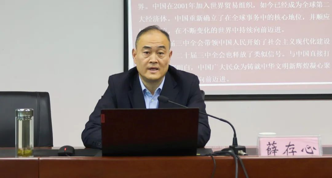 党委副书记薛存心在以《深入学习贯彻党的二十届三中全会精神专题报告》为题作专题报告时指出,学院党员干部教师要提高政治站位,深入理解、全面把握党的二十届三中全会精神实质,将学习成效转化为履职尽责、真抓实干的内在动力和具体行动。