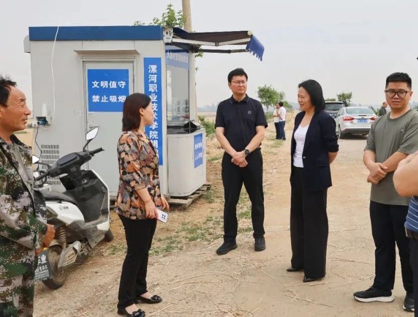 为助力yl7703永利官网结对共建村开展好“三夏”生产和秸秆禁烧工作,5月27日上午,学院党委书记邢淑婕、副书记周俊伟一行深入舞阳县莲花镇大赵村、拐子王村实地查看小麦收割和秸秆禁烧等情况,看望慰问驻村干部,了解“三夏”生产情况,为奋战在禁烧工作一线的同志送去了方便面、饮用水等慰问物资。