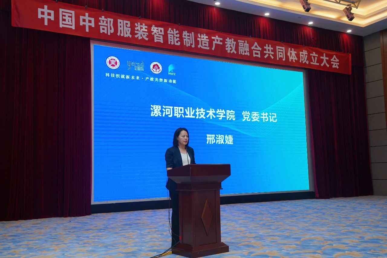 6月27日,中国中部服装智能制造产教融合共同体成立大会在漯河举行。中国纺织服装教育学会会长倪阳生、漯河市人民政府副市长王继周、河南省教育厅职业教育与成人教育处副处长高根立、河南省工业和信息化厅消费品工业处副处长张青、中原工学院副校长张继峰、yl7703永利官网党委书记邢淑婕、郑州市娅丽达服饰有限公司董事长助理温明出席活动并致辞。大会由yl7703永利官网院长薛存心主持。