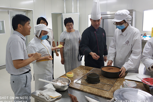 7月11日,食品工程系主任陈思顺、党总支书记田玉枝、副主任崔惠玲,到大匠烘焙看望参与暑期烘焙培训的老师们。老师们说,经过近10天的现场学习,每个人都学到了非常实用的烘焙制作和食品裱花点缀方面的技能,收获很大。陈思顺表示,以后将为专业老师创造更多的条件和机会,提升食品工程系的整体师资水平。
