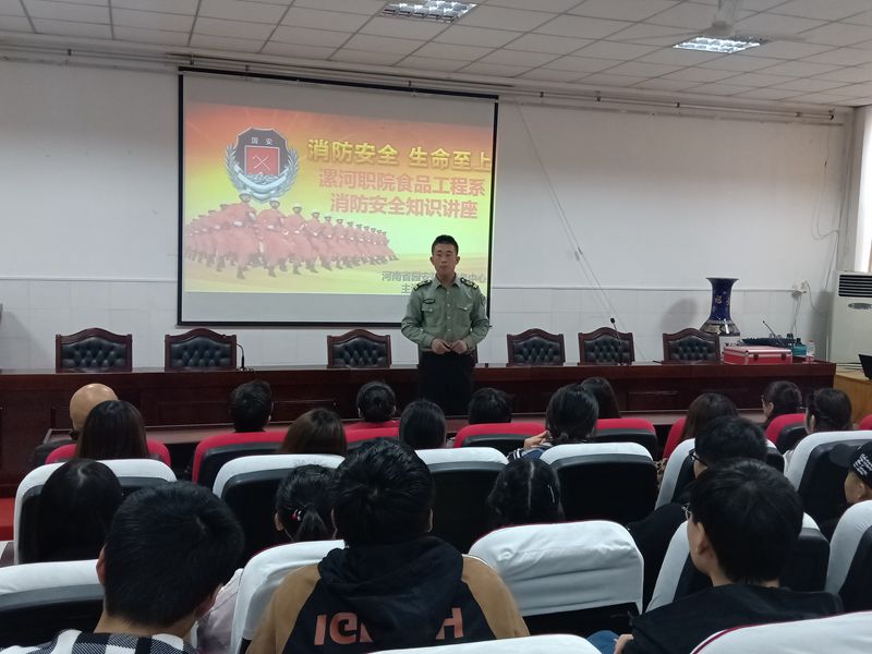 为普及消防安全知识、加强消防安全意识和消防自救技能、营造平安和谐的校园环境。11月23日,食品工程系在保卫处大力支持下,邀请河南省消防协会曹宇飞教官开展消防安全知识讲座。保卫处处长王洪克,食品工程系党总支书记田玉枝、系全体师生代表150余人参加。