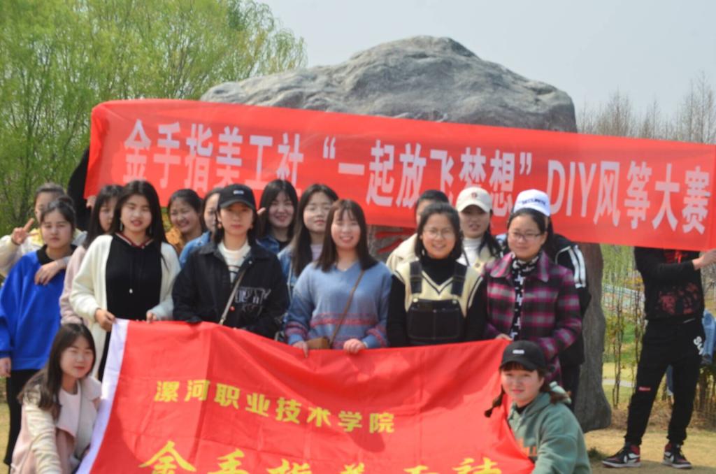 3月23日下午,许慎文化学院“金手指”美工社在澧河河堤上进行了主题为“一起放飞梦想”的风筝DIY大赛,“金手指”美工社的指导老师与全体社员参加了此次活动。