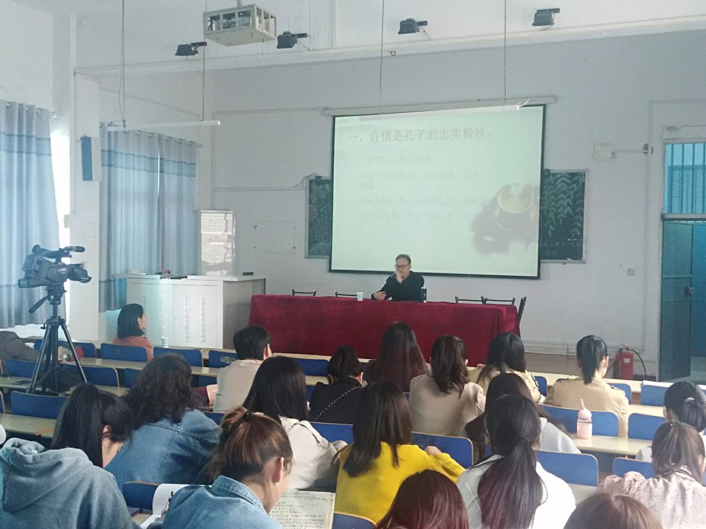 4月12日,漯河市许慎文化推广志愿者服务团李运生老师应邀来我校举办以“孔子、许慎与漯河”为主题的学术讲座。李运生是河南省学术技术带头人,河南省骨干教师、河南省写作协会理事、漯河市许慎文化研究小组成员,对许慎文化有系统深入的研究。许慎文化推广志愿者服务团团长、正东教育集团郭玉华校长,许慎文化学院领导班子成员、语文教育教研室、小学教育教研室全体教师,2017级、2018级语文教育专业辅导员和全体同学、“许慎文学通社”“奇雒之音诵读协会”指导老师和全体会员200多人聆听了讲座。许慎文化学院副院长孟令超主持讲座。