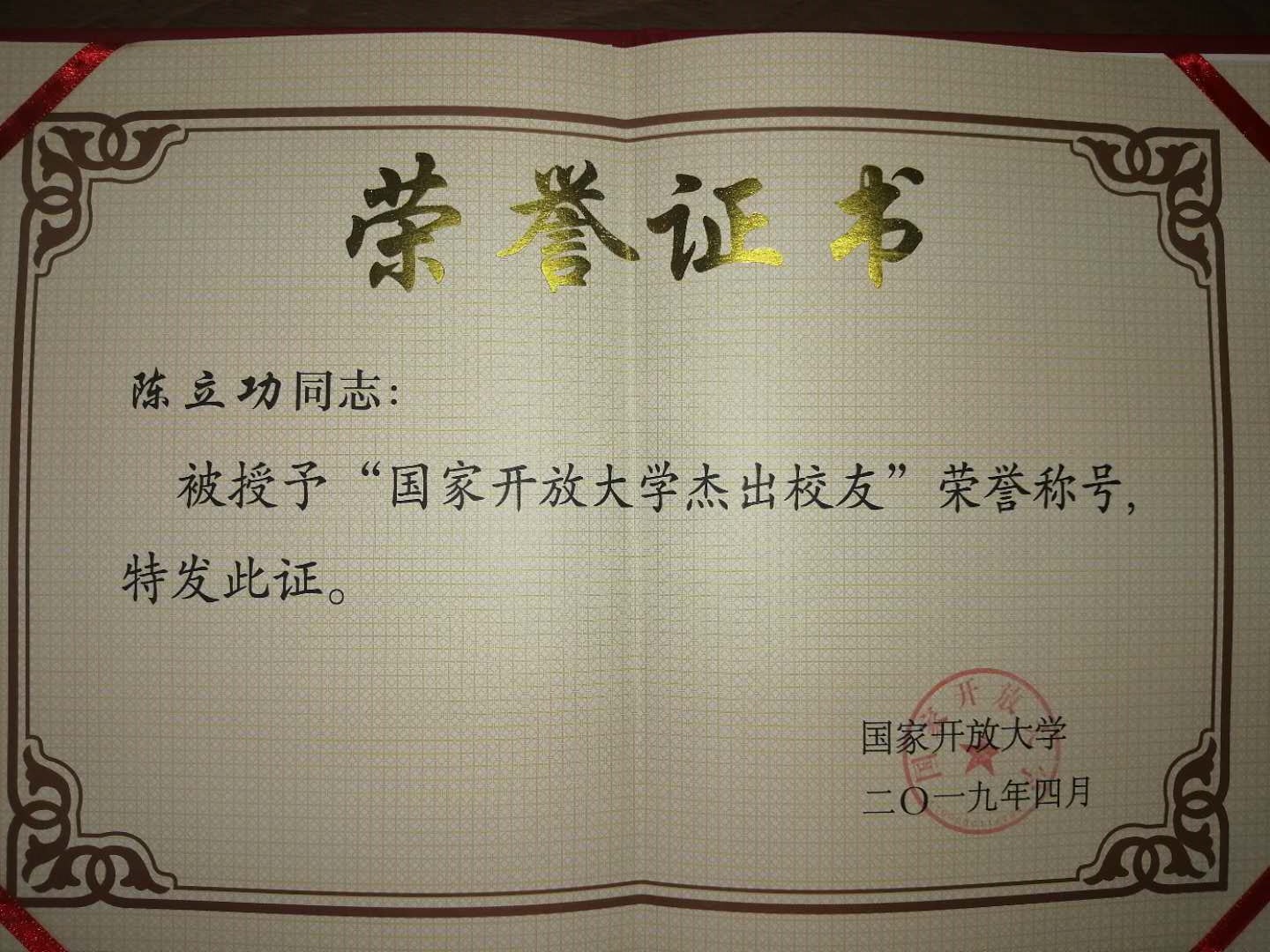 为深入贯彻党的十九大精神,落实立德树人根本任务,纪念国家开放大学(原名中央广播大学)建校40周年,展示学校人才培养成果及校友在社会各领域的突出成就,充分发挥杰出校友对广大在校学生的榜样和示范作用,国家开放大学在全国范围内开展征集杰出校友活动,我校积极响应国开和省电大的号召,广泛征求全市各界人士的意见,共推选出陈立功、张赢、王予、陈春霞四位杰出校友候选人,由于四位校友事迹突出,全部当选为国家开放大学“杰出校友”。