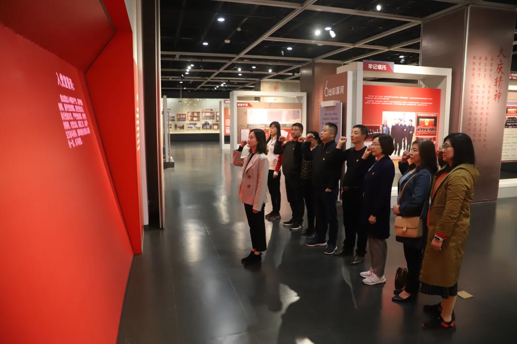 参观结束后,全体思政教师重温入党誓词。思政部优秀骨干教师李诚诚带领大家庄严宣誓:“我志愿加入中国共产党,拥护党的纲领,遵守党的章程……”初心,宛在一字一句间,字字铿锵;使命,犹如交汇的声音,充满力量。通过本次的参观学习,唤醒了作为教育者为教育事业奋斗终身的初心,坚定了党员教师不畏艰难,争做人民满意教师的决心,大家深受教育和启发,纷纷表示要把此次学习的内心感化转化为推进教学质量提升的实际行动,不断增强思政课学生的获得感。