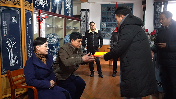 12月31日,为弘扬传统文化,传承非遗国粹,中国扎染艺术大师、我校特聘教授朱辛伟老师,全国青年岗位能手、河南省五四青年奖章获得者、青年剪纸艺术家陈明杰老师一行来到浙江省桐乡市蓝茂丰桐乡蓝印花布厂有限公司艺术馆参加国家级非物质文化遗产代表性项目“蓝印花布印染技艺”拜师仪式。