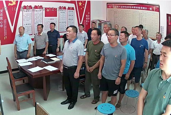 学校派驻大赵村第一书记朱献周带领大家进行理论学习,领学了《关于开展“牢记初心使命、争当出彩先锋”7月份主题党日活动的通知》、《习近平总书记关于民族工作重要论述摘编》、习近平在中央政治局第二十一次集体学习时的重要讲话《贯彻落实好新时代党的组织路线 不断把党建设得更加坚强有力》等,组织大家共同观看纪录片《战“疫”一线党旗红》。