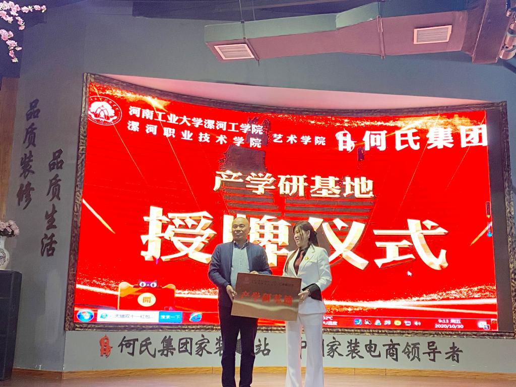 近日,艺术学院院长王群星、副书记李晓伟带领相关专业负责人分赴天誉国际装饰有限公司、北京龙发装饰漯河分公司、何氏装饰集团有限公司、和正装饰有限公司进行产学研基地授牌,为企业品牌设计师颁发特聘讲师证书,并在企业负责人陪同下参观了各企业工作场景,慰问了在企业正在实习实训的学生。