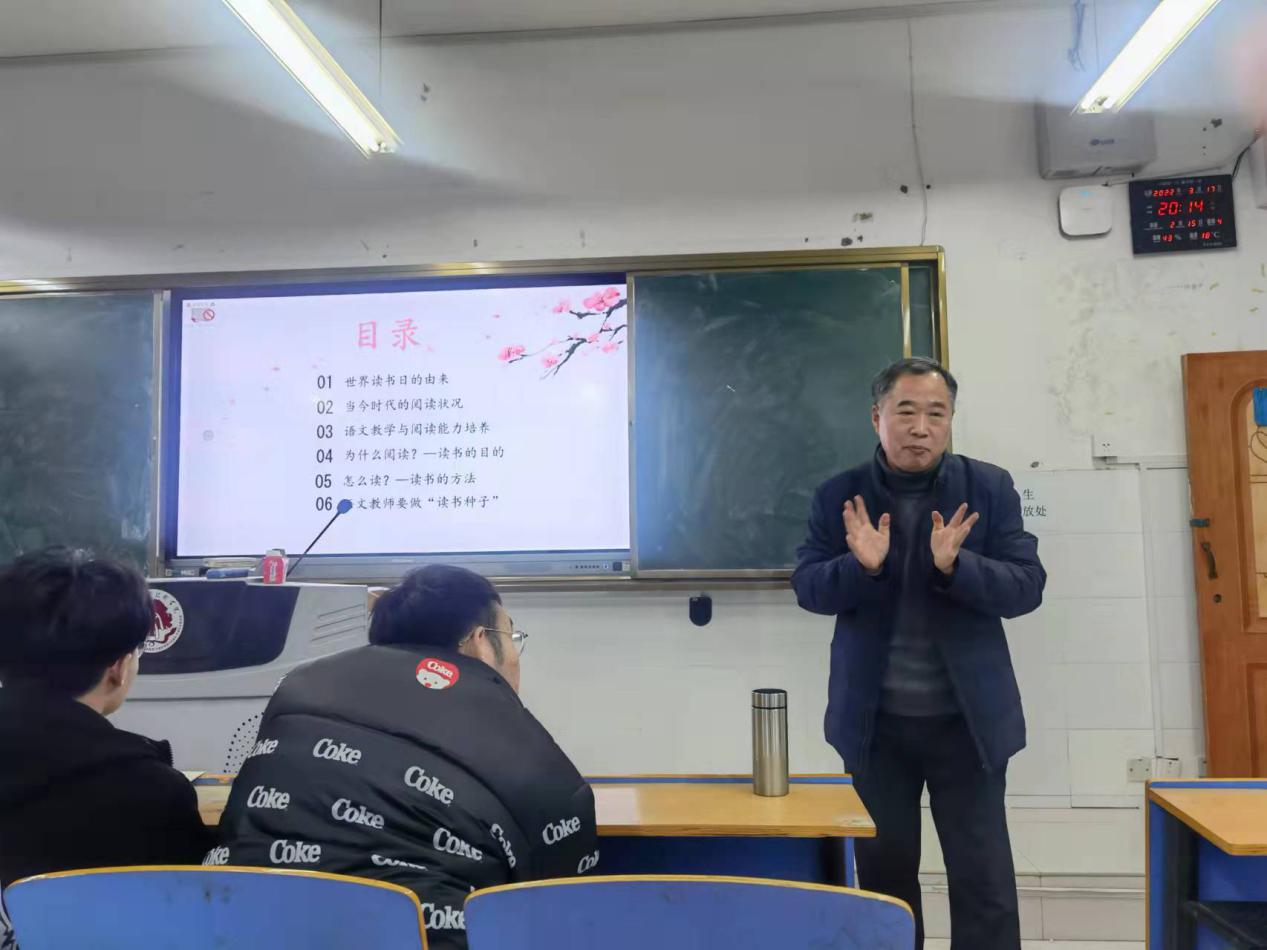 为迎接世界读书日的到来,使学生养成良好的阅读习惯,提高学生的自主学习能力,3月17日,许慎文化学院举行以“多读书,读好书,好读书,读整本书”为主题的阅读专题讲座,邀请学校潘玉尚老师主讲,许慎文化学院语文教育专业师生参加讲座。