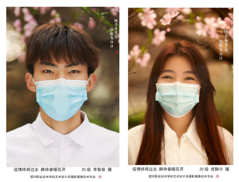艺术设计系赵肖老师在《创意摄影》课程中以“疫情终将过去,静待春暖花开”为主题,让学生自由组织团队、找选题、做策划,拍作品,从而抒发当代大学生面对突如其来的疫情,积极乐观敢于承担、不信谣不传谣、传播正能量的决心。