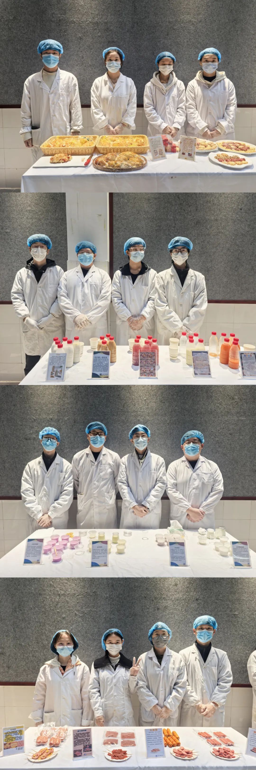 据了解,现场展示内容为食品营养与检验教育专业课程工艺作品,包括乳制品类、烘焙类、饮料类、肉制品类四大类,涵盖发酵酸奶、水果风味酸奶、面包、饼干、调配果汁、风味果茶、奶茶、肉脯、肉肠等九大种二十多项产品。