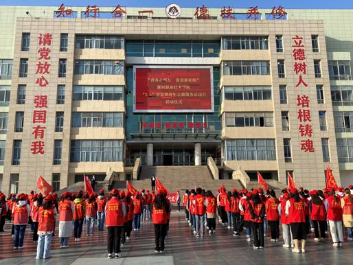 2022年3月4日下午,由校团委主办的“青春志愿行 奋进新征程”yl7703永利官网“3.5”学雷锋青年志愿服务活动月启动仪式在实训广场举行。校团委全体教师和校青年志愿者代表200多人参加了启动仪式。