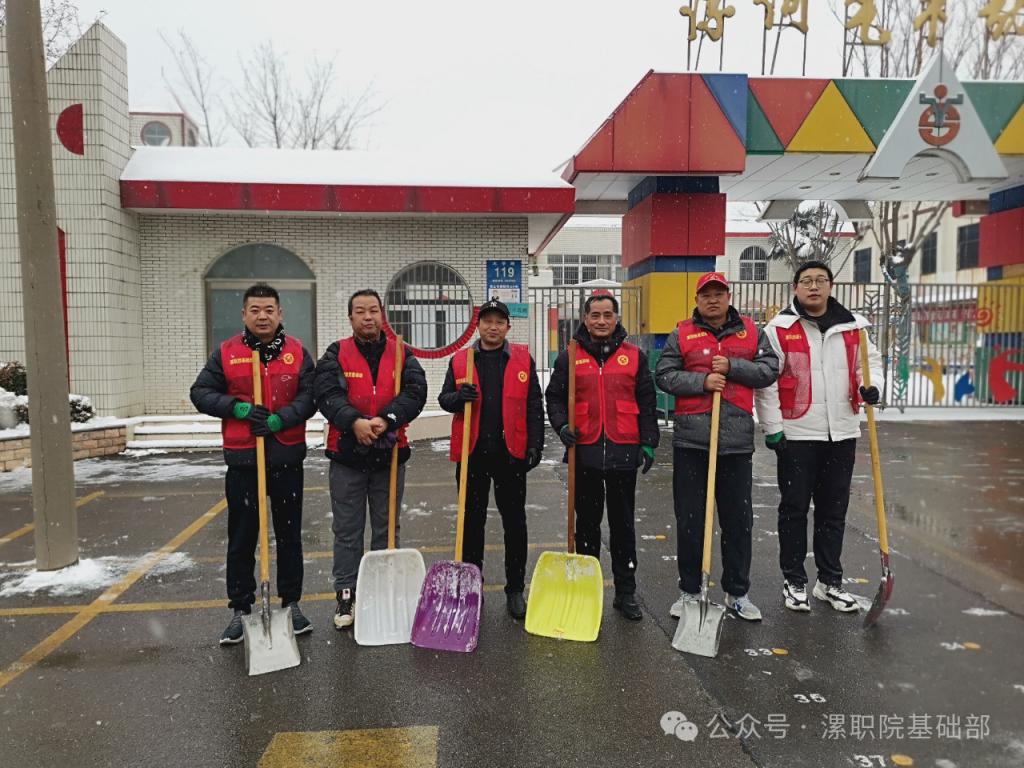 下雪是景,除雪是情。此次党员清扫积雪志愿服务活动充分发挥了基础部党支部的战斗堡垒作用和党员先锋模范作用,弘扬了志愿服务精神,彰显了基础部党支部的凝集力和战斗力,用实际行动践行了党员为人民服务的初心和使命。下一步,基础部广大党员教师将持续关注天气变化,紧盯雪情雪势,按照学校要求,继续做好应对极端天气的应急工作,冲锋在前,勇于担当,持续做好清雪除冰保畅工作,努力为市民群众生活、安全出行保驾护航。