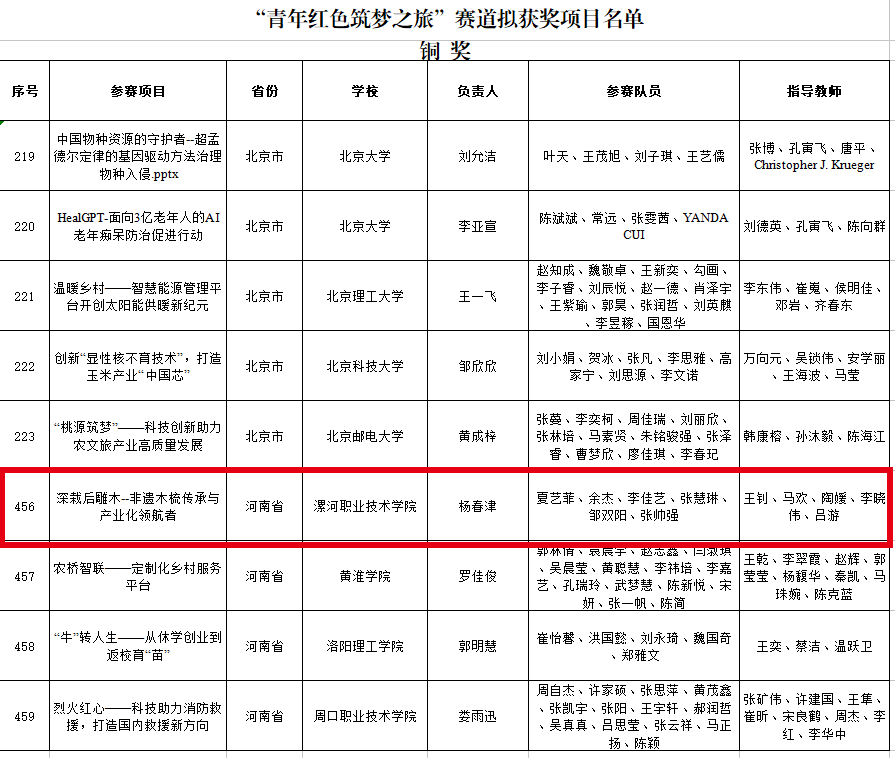 近日,教育部发布了中国国际大学生创新大赛(2024)的获奖项目名单。yl7703永利官网参赛项目《深栽后雕木--非遗木梳传承与产业化领航者》、《丰景科技——中国智能设备安装服务专家》成功入围国家级总决赛,其中《深栽后雕木——非遗木梳传承与产业化领航者》项目进一步荣获“青年红色筑梦之旅”赛道铜奖,实现历史性突破。