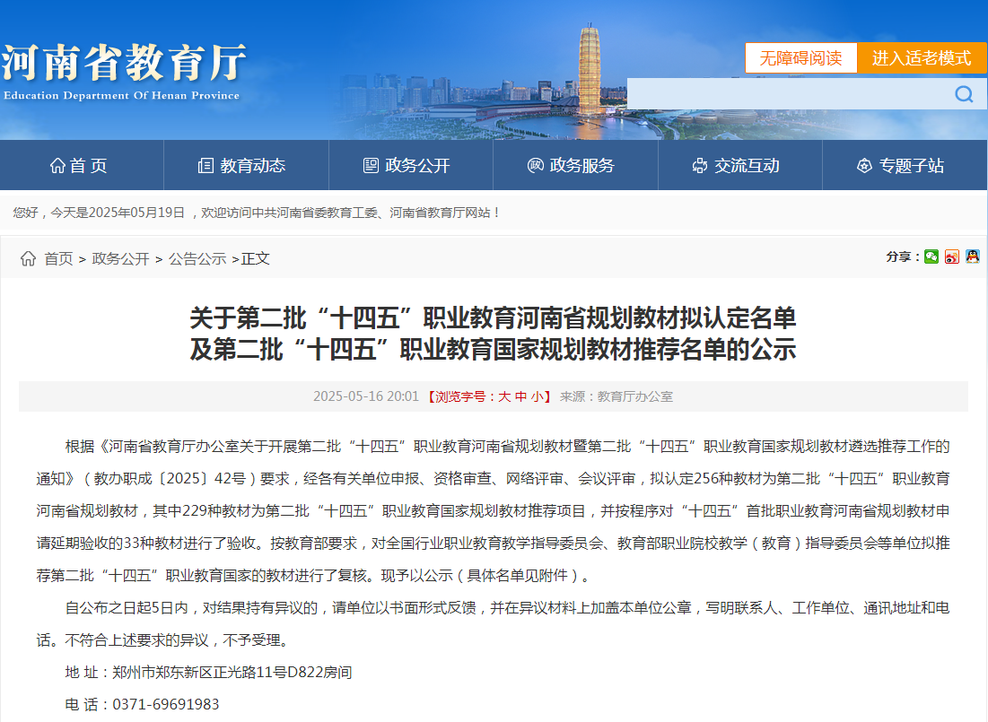 近日,河南省教育厅办公室发布了《关于第二批“十四五”职业教育河南省规划教材拟认定名单及第二批“十四五”职业教育国家规划教材推荐名单的公示》。yl7703永利官网《旅游市场营销》《食品营养与健康(第二版)》《装配式建筑混凝土构件制作与运输》3部教材入选“十四五”职业教育河南省规划教材名单,其中《食品营养与健康(第二版)》拟定为第二批“十四五”职业教育国家规划教材,《装配式建筑混凝土构件制作与运输》通过“十四五”首批职业教育河南省规划教材延期验收。