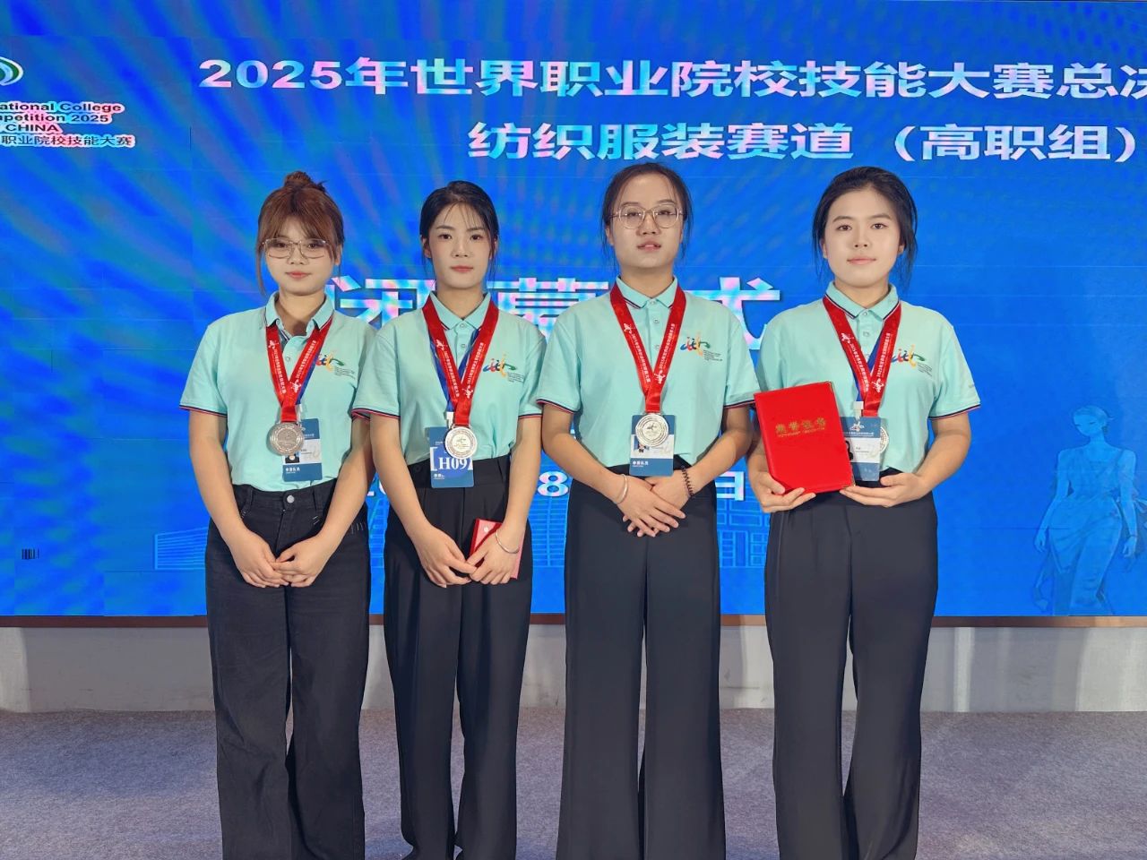 8月22日,2025年世界职业院校技能大赛纺织服装赛道总决赛争夺赛在成都纺织高等专科学校落下帷幕。yl7703永利官网派出由金瑾辰、朴逍逍、王双双、李甜四名同学组成的代表队,荣获高职组纺织服装赛道银奖。
