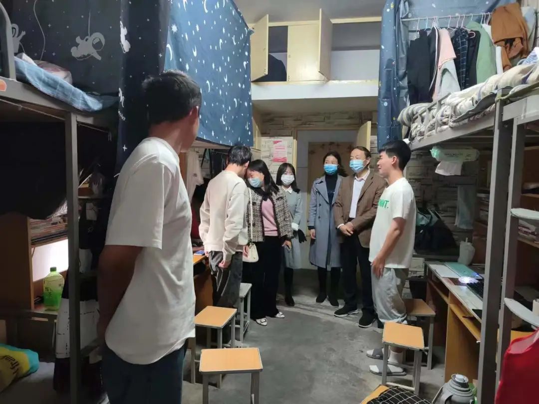 在走访慰问过程中,带班领导、辅导员与学生进行了亲切交流,了解了学生目前的生活、学习状况,询问了宿舍管理、疫情防控、环境卫生等日常工作开展情况,拉近了师生间的距离,传递了学院对学生的关心与爱护之情,营造了良好的学习和生活环境,并叮嘱同学们自觉遵守学校疫情防控有关规定,做好自身防护。