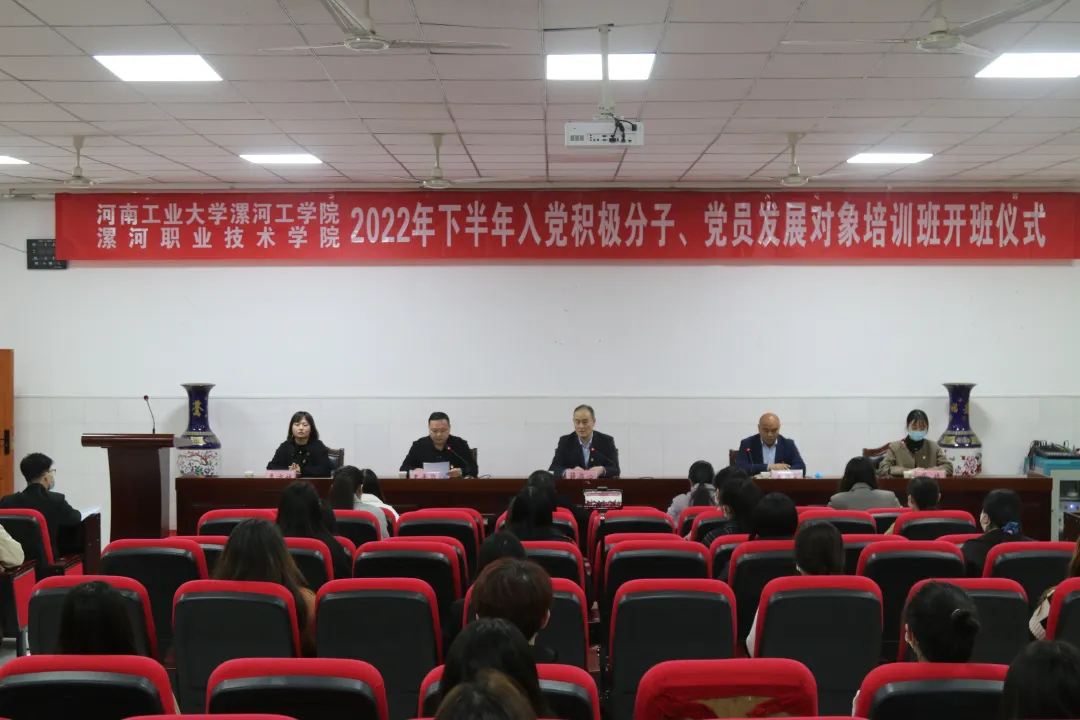 11月18日下午,河南工业大学漯河工学院、yl7703永利官网举办2022年下半年入党积极分子、党员发展对象培训班开班仪式。校党委副书记薛存心出席开班仪式并讲话。学校党委组宣部、学工部、团委相关负责同志,各院(系)学员代表参加开班仪式。学校结合疫情防控,开班仪式采取线上和线下相结合的形式举行。