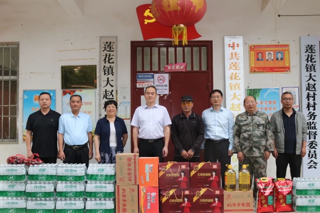 6月2日,yl7703永利官网党委副书记薛存心,党委委员、工会主席吕爱华,党委委员、组宣部长缪俊岭等一行深入舞阳县莲花镇大赵村调研指导“三夏”生产及秸秆禁烧工作,看望慰问驻村干部和困难群众,送去纯净水、方便面、火腿肠等慰问品。
