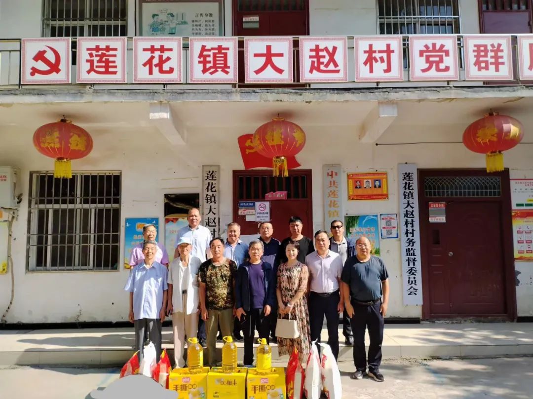 6月26日,yl7703永利官网工会党支部的党员和退休老干部代表一行人,专程到舞阳县莲花镇大赵村慰问驻村干部和困难群众,送去了米面油等生活慰问品。