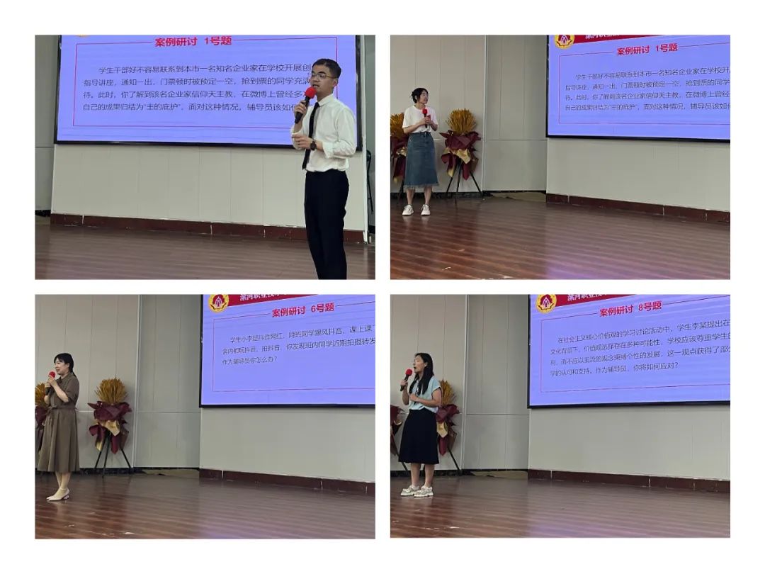 本次比赛分为初赛和决赛两个环节,初赛为理论知识测试,5月份已由各系部自行组织完成。决赛由学校统一组织进行,经过选拔,共有19名辅导员参加决赛。